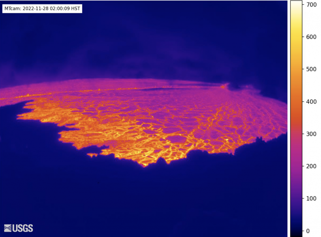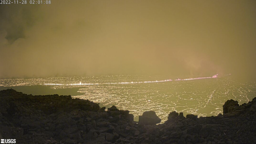The eruption of Mauna Loa has migrated from the summit to the Northeast Rift Zone where fissures are feeding several lava flows, according to an update from the Hawaiian Volcano Observatory, issued at 7:20 a.m. on Monday, Nov. 28, 2022.
