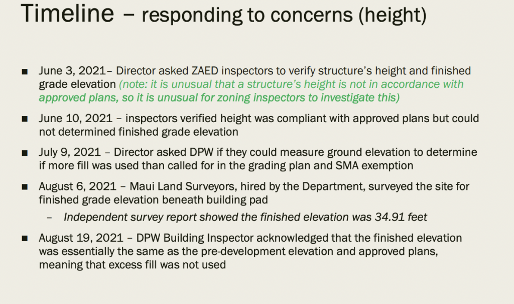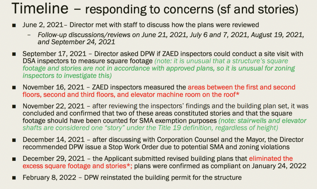 “We went through it in great detail several times to really understand what happened and what got missed,” she said. “I think it’s pretty clear how those errors happened, and yes, we have made folks who review SMA as well as building plan reviewers aware, [of] things to look out for. And I can’t speak about discipline that was taken; I can say that appropriate action was taken.”