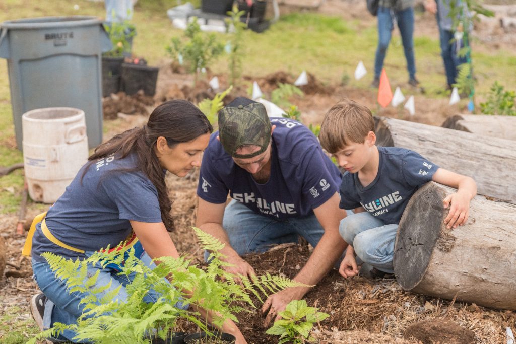 They shared stories and got their hands dirty helping to plant the 20,000th native tree at the Pōhakuokalā Gulch Community Forest Restoration Project, part of the companyʻs Skyline Conservation Initiative, part of the companyʻs Skyline Conservation Initiative.