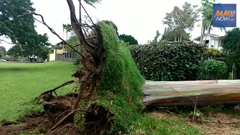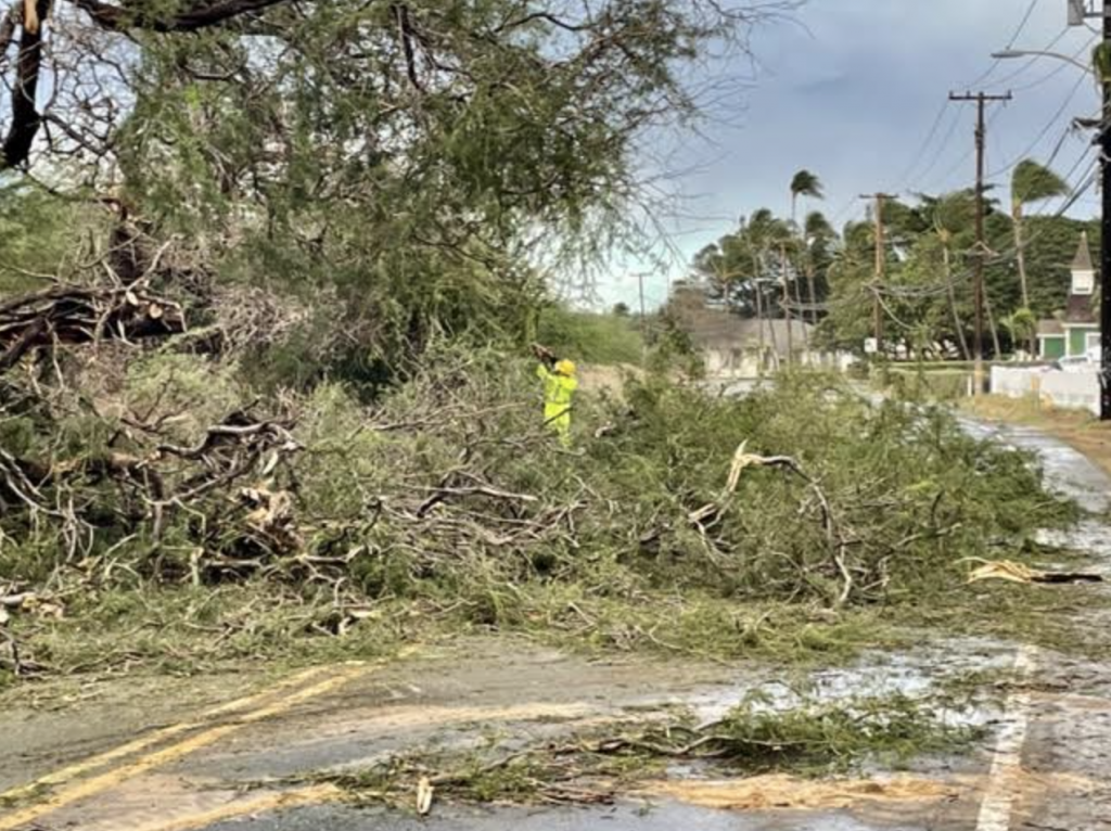 Neighborhoods across Maui are cleaning up a path of debris left by a vigorous cold front that passed through the state on Monday. The storm left portions of South Kīhei Road covered in mud, uprooted trees in Maui Lani and South Maui, and knocked out power to an estimated 12,000 customers on the Valley Isle. It also resulted in hazardous traveling conditions along the Hāna Highway, and caused some flights to be diverted because of poor visibility.