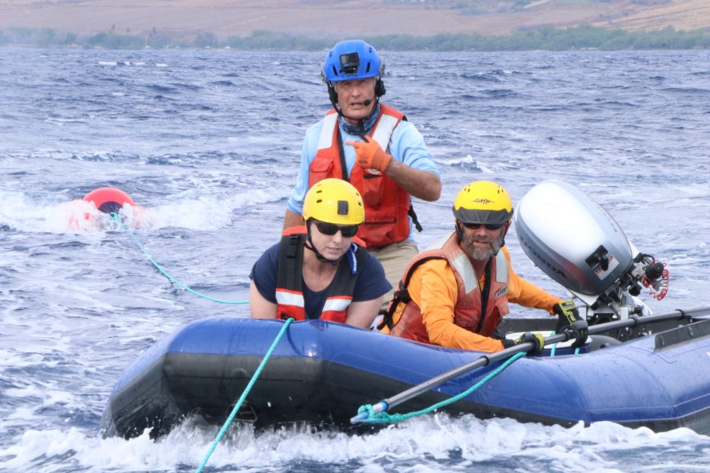Whale disentanglement crew members are part of an Incident Command System. Lyman tells DLNR that the ideal number of people to have involved in a disentanglement is eight.