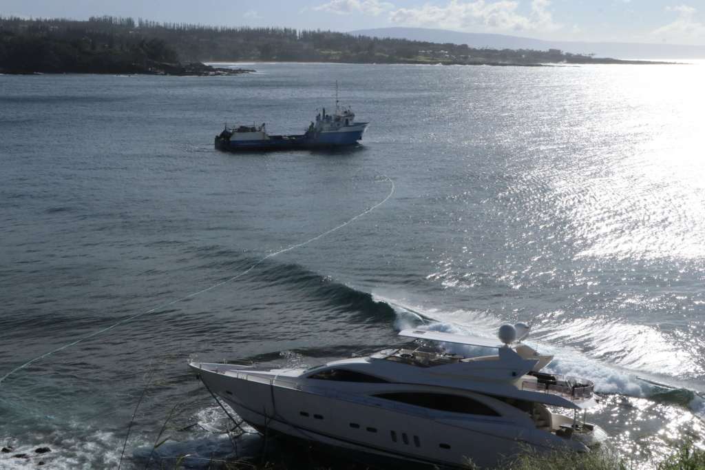 Salvage efforts to remove grounded yacht from rocks at Honolua Bay continue today
