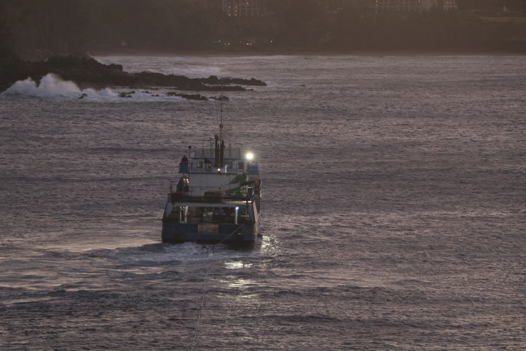The yacht has been grounded for a week as of today. The salvage crew will return to the location this morning to continue its efforts. The dirt road at Līpoa Point will remain closed until salvage operations have concluded.