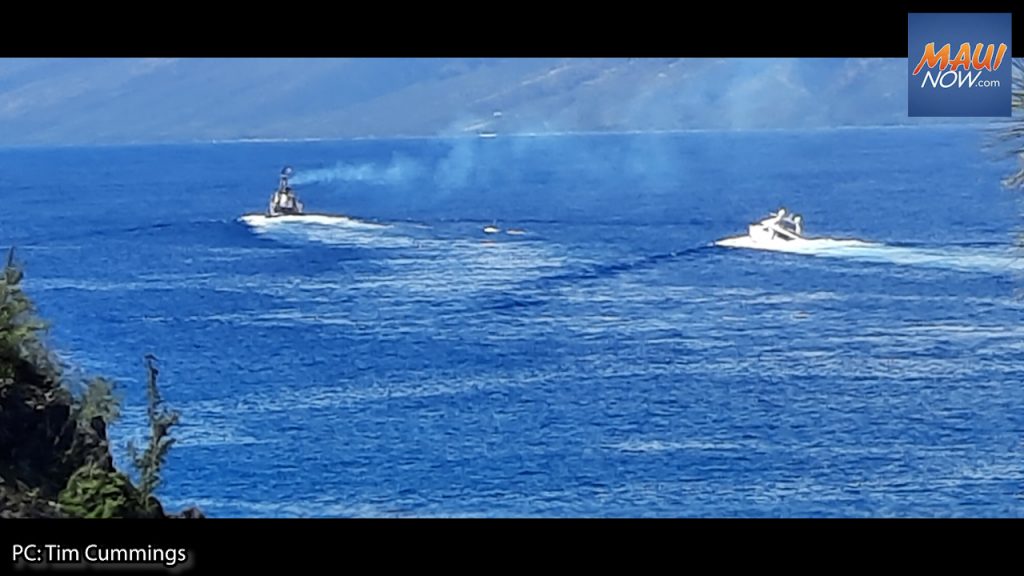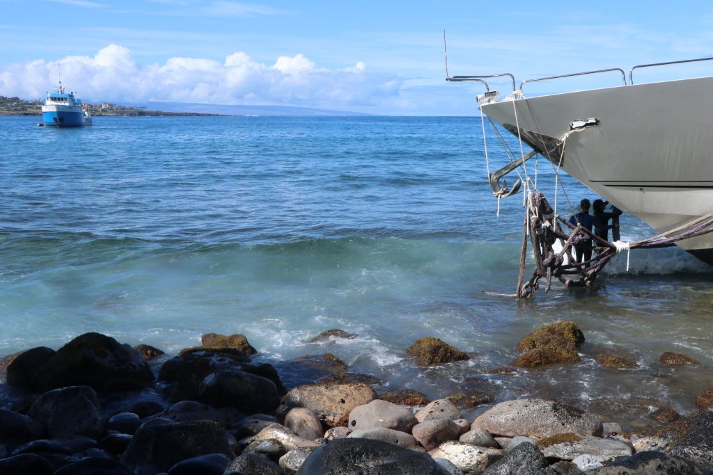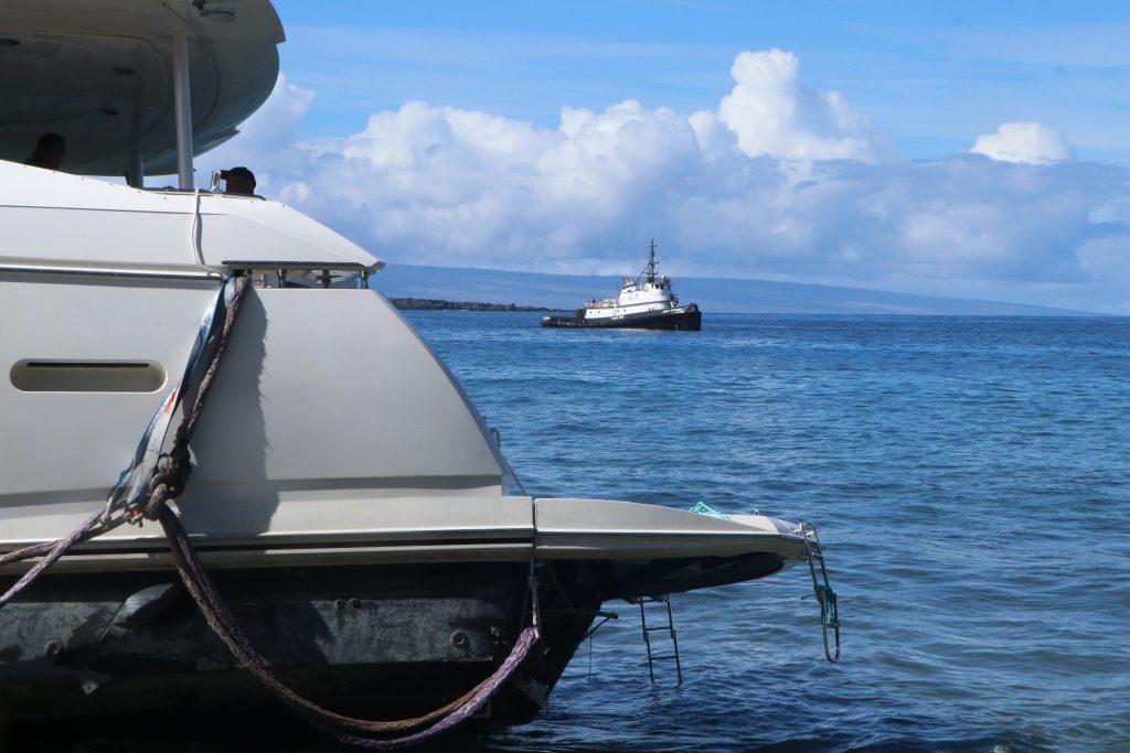 The salvage ship, Kahi, operated by Visionary Marine LLC and a tractor tug, the Mary Catherine operated by Sause Brothers Inc., both of Honolulu are stationed just outside the Honolua-Mokulē’ia Marine Life Conservation District for the effort.