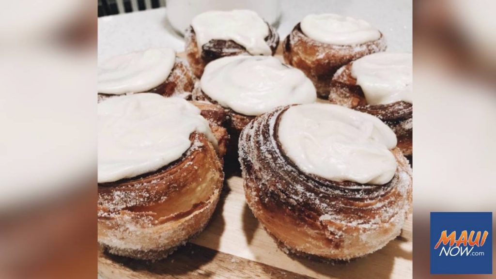 Momona Bakery and Coffee Shop, which opened a little over a month ago in Kahului town, serves hundreds of freshly baked pastries a day, but the most popular items — the stuffed croissants and the cinnamon rolls — are usually sold out by 9 a.m. Staff advises that people arrive by 7 a.m. to get what they want.