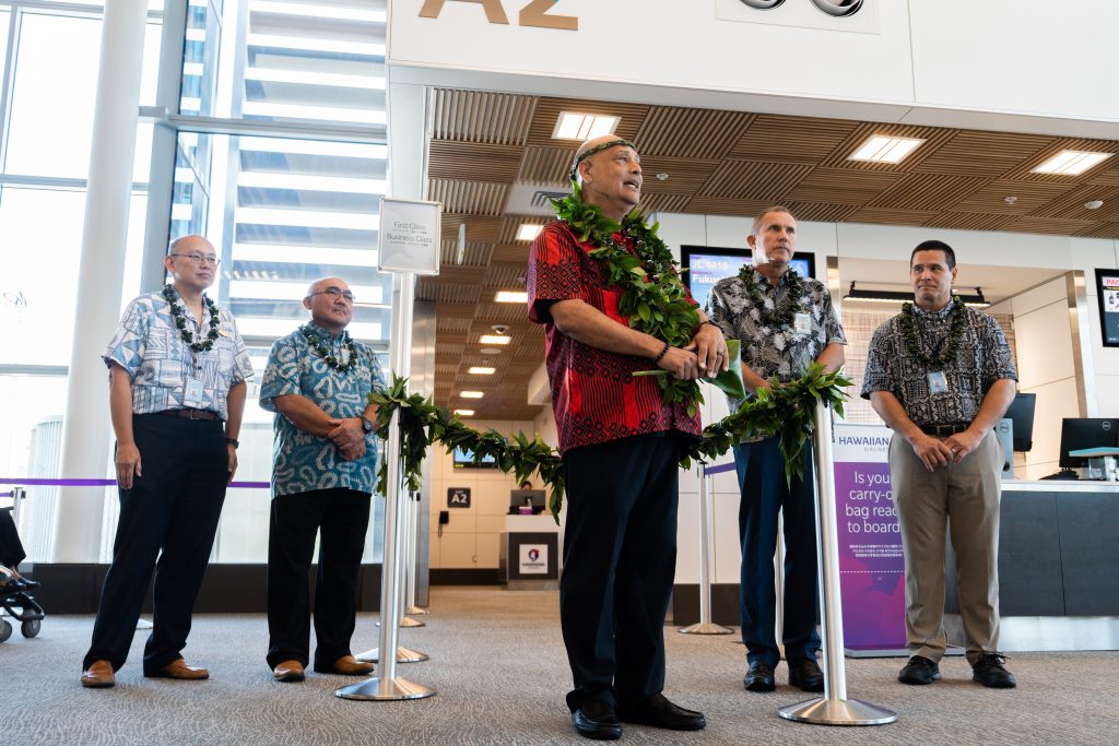 At HNL, remarks were made by Jon Snook, EVP and chief operations officer at Hawaiian Airlines and Ed Sniffen, director for Department of Transportation – Airports.