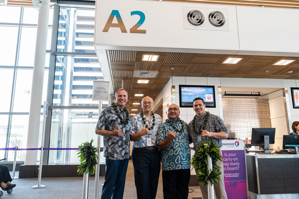 Departing guests in Honolulu and Fukuoka were treated to music, lei and welcome gifts during the weekend festivities.