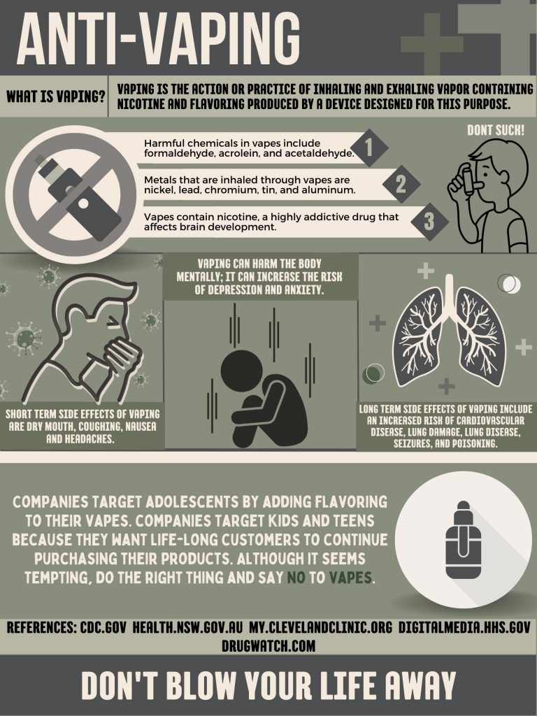 High and middle schoolers were tasked with coming up with an anti-vaping campaign, including a slogan, a poster/brochure and a short public service announcement video. All information used in campaigns had to be cited and referenced.