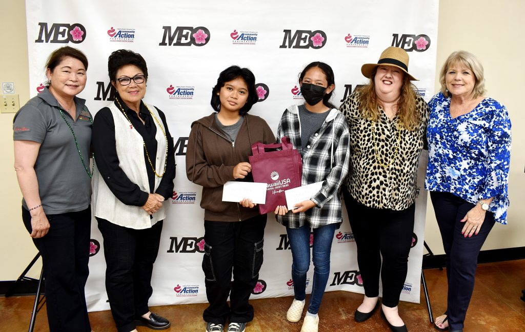 Bass and Doses/Tabada received their prizes at a ceremony at Maui Economic Opportunity in Wailuku that was hosted by contest sponsor, MEO Youth Services, in partnership with the Maui Chamber of Commerce and Hawaiʻi USA Federal Credit Union. More than 50 youth, including a contingent from Hāna; parents; and staff from MEO, the Chamber and Hawaii USA FCU attended the gathering.