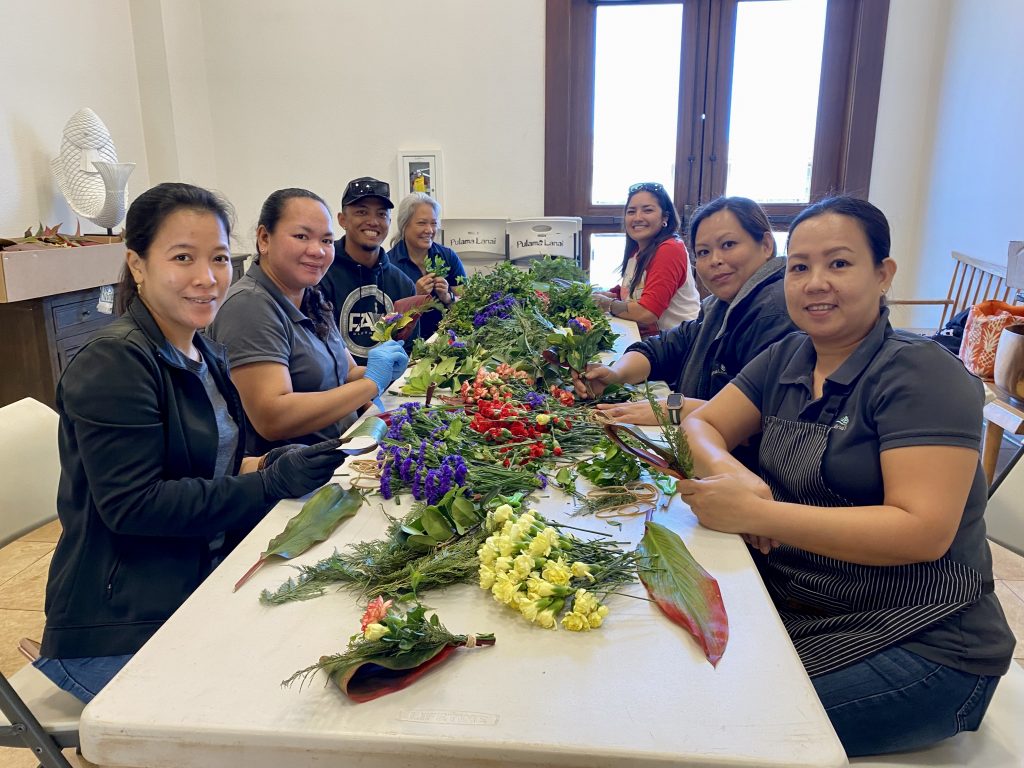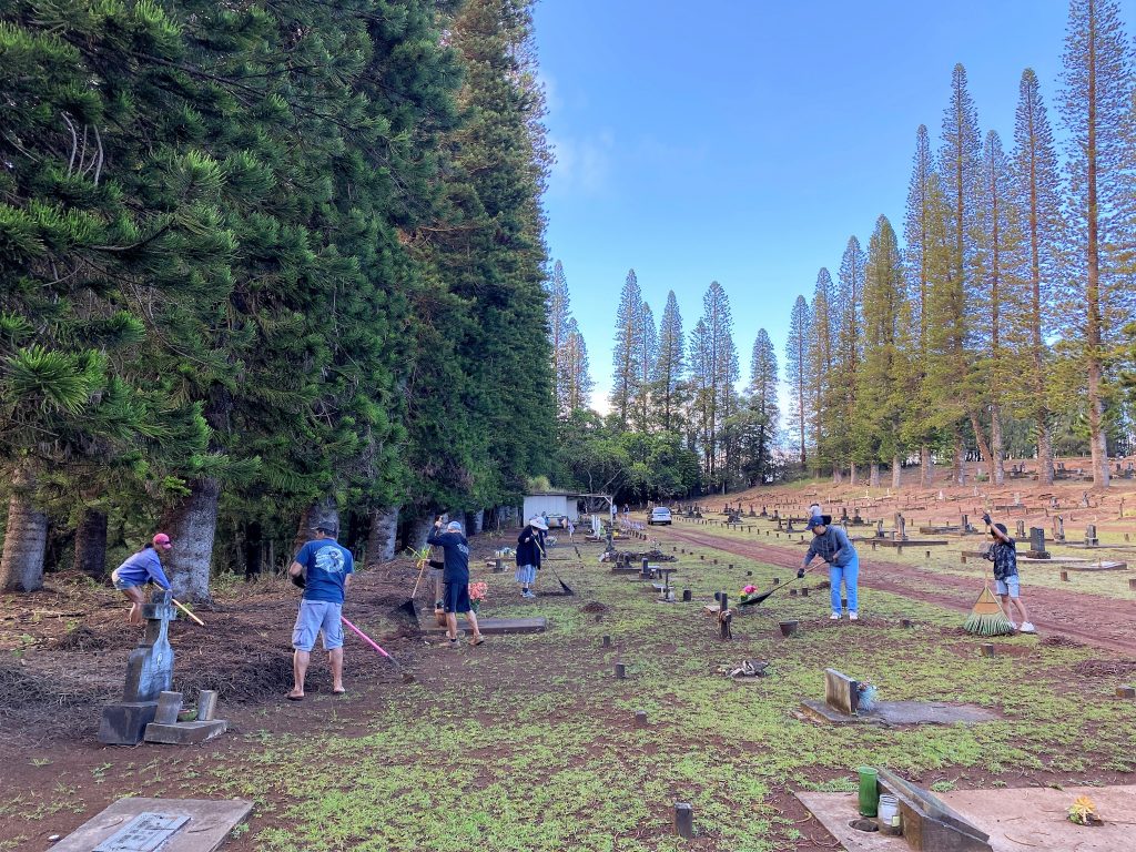 The center brought together the island community to participate in bouquet making on Saturday at the Lānaʻi Culture & Heritage Center lawn. On Monday, more than 80 volunteers worked to clean the cemetery and place bouquets on graves at the Lānaʻi Community Cemetery.