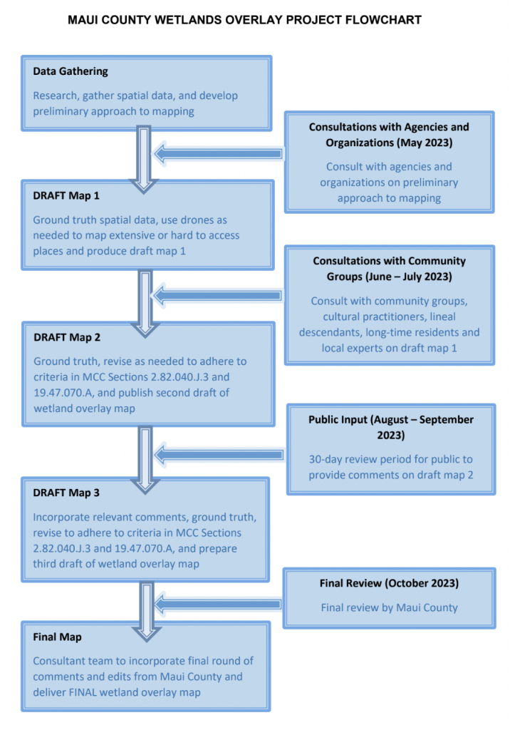 Consultants H.T. Harvey & Associates, who have experts in wetland policy, Hawaiian wetland ecology and mapping, were recently selected to help develop the map. Also, the University of Hawaiʻi Sea Grant Program is providing technical support on the map.