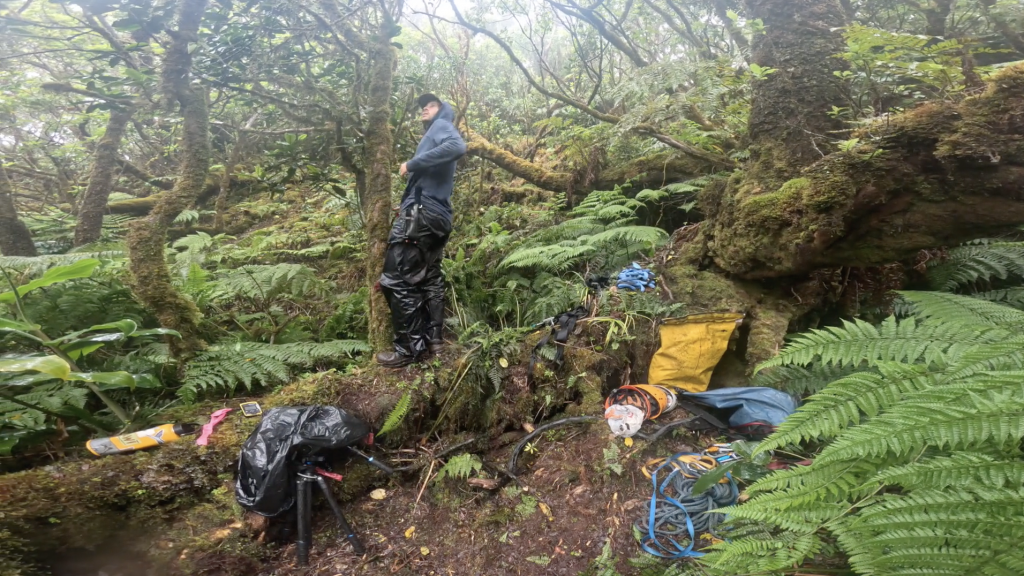 The team is led by Justin Hite, and works from a remote camp, perched on a narrow 3,000-foot cliff, near the top of Wainiha Valley.