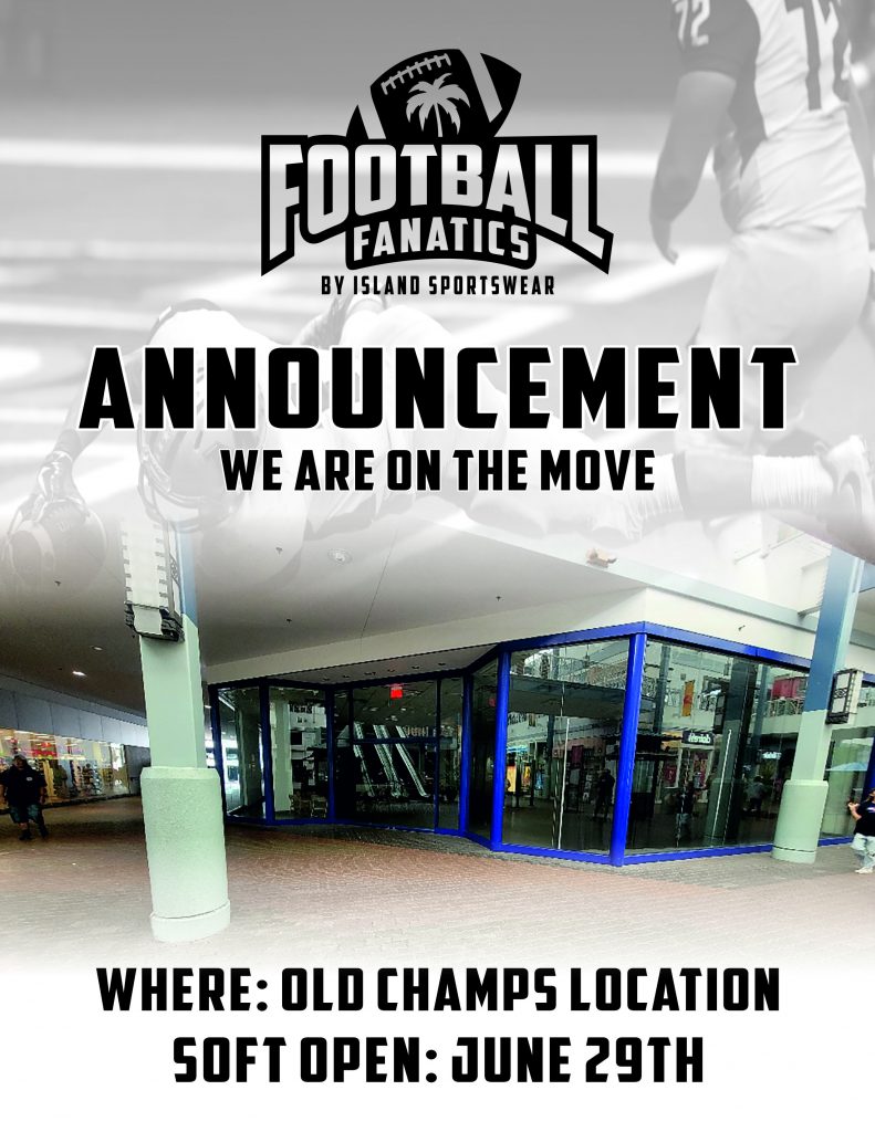 Football Fanatics moves to the bigger space later this month, with a soft opening set for June 29.