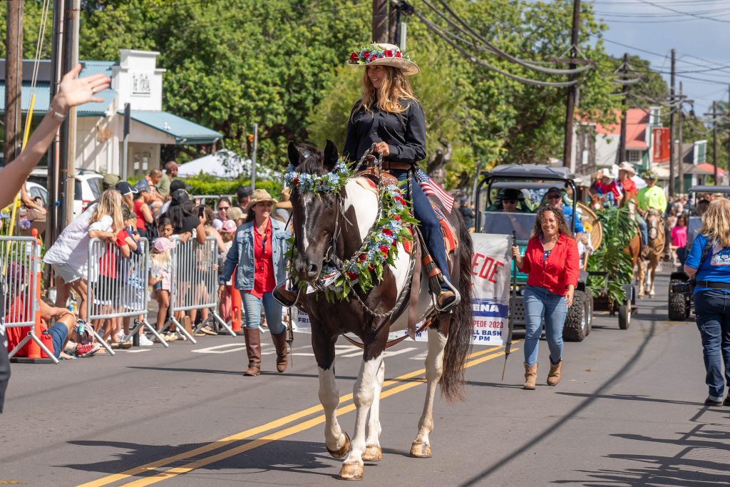 The Makawao Rodeo Parade returned in full flair on Saturday after a three-year hiatus due to the pandemic. Spectators were greeted in true paniolo style with mounted and walking units, and popular stick horse races for keiki. The 2023 Parade Grand Marshal, Donna Otsuka directed the keiki pāʻū unit, and Duane Hamamura was the event’s Special Honoree this year.