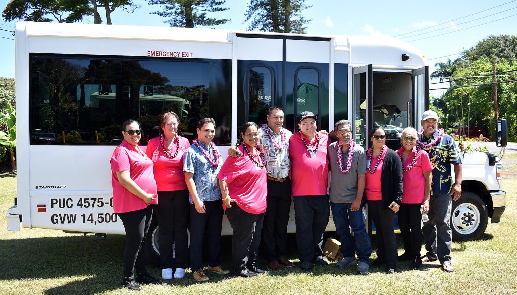 A new eight-passenger bus to transport East Maui residents to their jobs, shopping in Central Maui and medical appointments was blessed at a ceremony Friday attended by more than 20 people, including Maui Economic Opportunity drivers and staff, Maui County officials and riders.