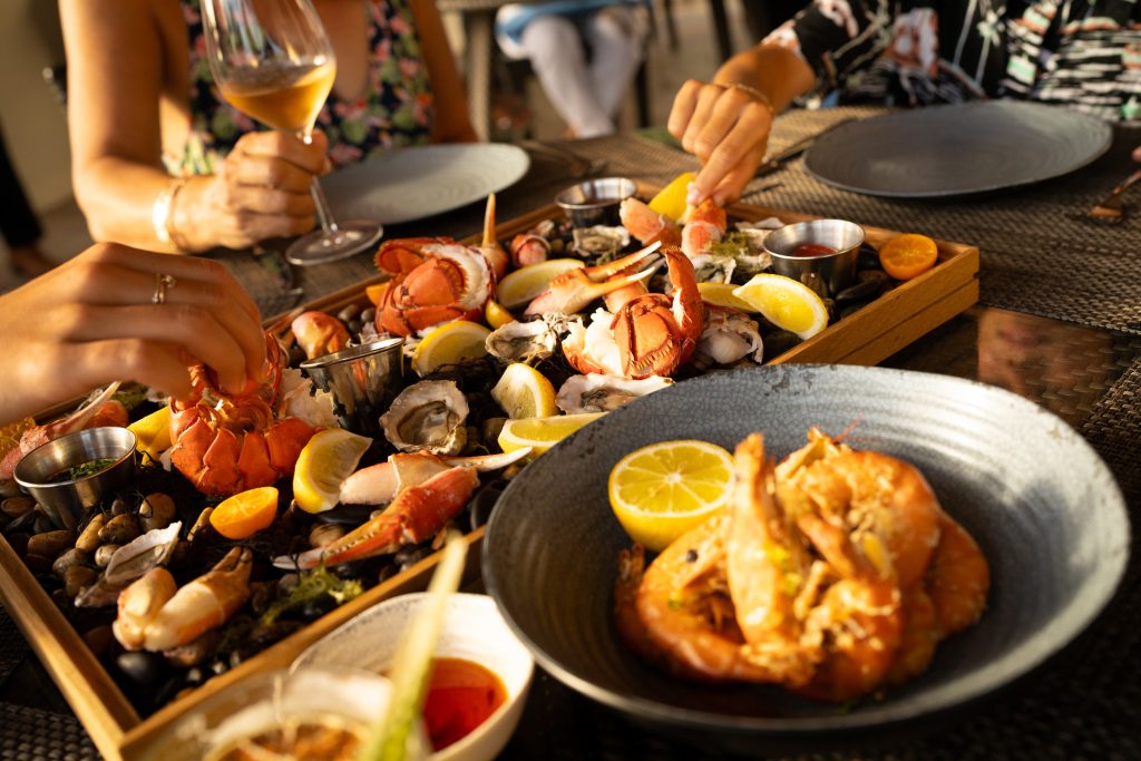 Each evening, as the sun sets, AMA Bar & Grill transforms from a poolside eatery into a sea-to-table culinary experience, offering freshly caught seafood selections along with vibrant cocktails and elevated wines by the glass and bottle.