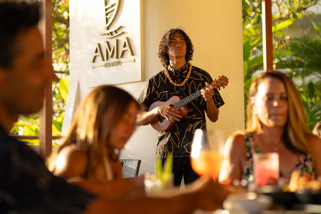 AMA’s new evening concept, serving casual elegance paired with exceptional cuisine, debuted on July 14, 2023. This comes following the recent transformation of the resort’s 413 one-bedroom suites and 37 two- and three-bedroom villas. Resort executives say the redesign resulted in artfully accommodations “that evoke stories of the island’s rich cultural heritage and accentuate the natural beauty of Hawaiʻi.”