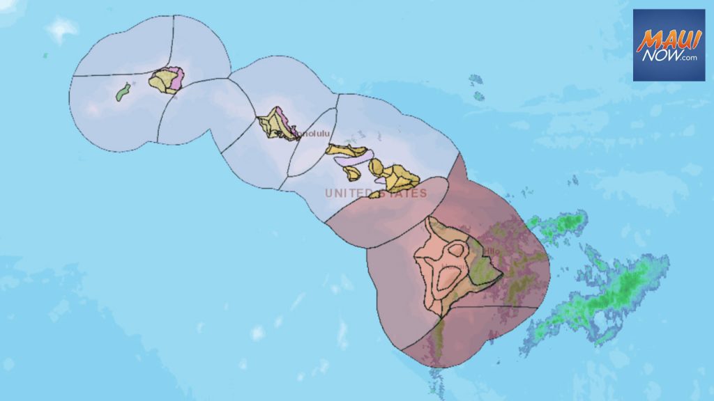 MAUI SPECIFIC INFO: For Maui County, the National Weather Service reports that “very strong easterly winds with ample tropical moisture will produce periods of heavy rain over the windward areas and especially over the windward mountains.” The NWS is forecasting rainfall totals of 3 to 6 inches with isolated higher amounts possible tonight through Wednesday.