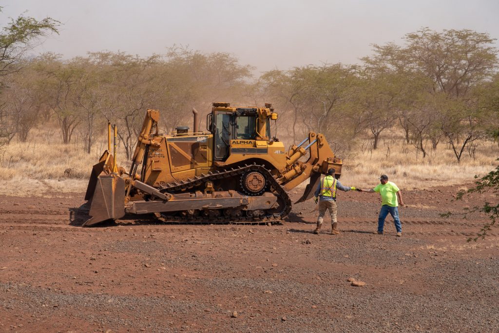 A fire engine was on scene, with private assets from Goodfellow Brothers assisting to spray water on surrounding areas. Crews worked to periodically refill their tanks at the nearby fire hydrants and assist in fire suppression efforts throughout the neighborhood. Earth-moving equipment was also used to clear the area of shrubs, trees and dry grass.