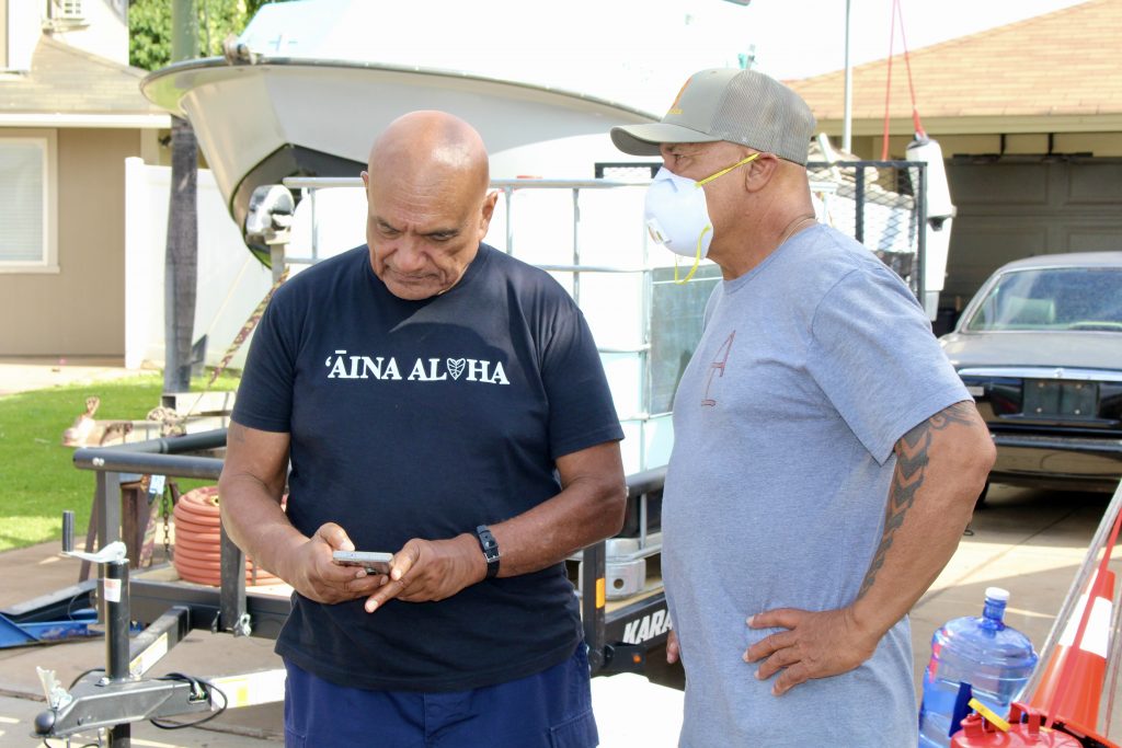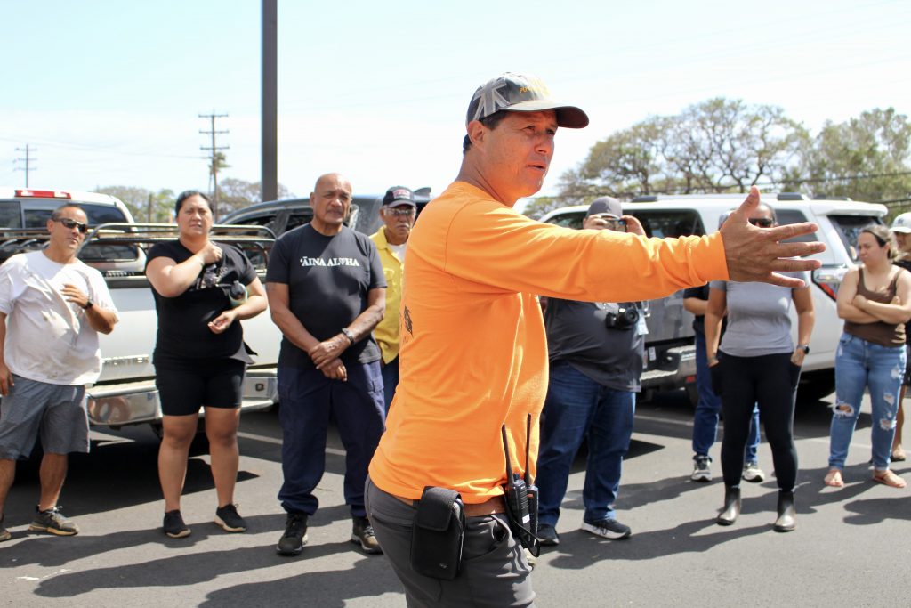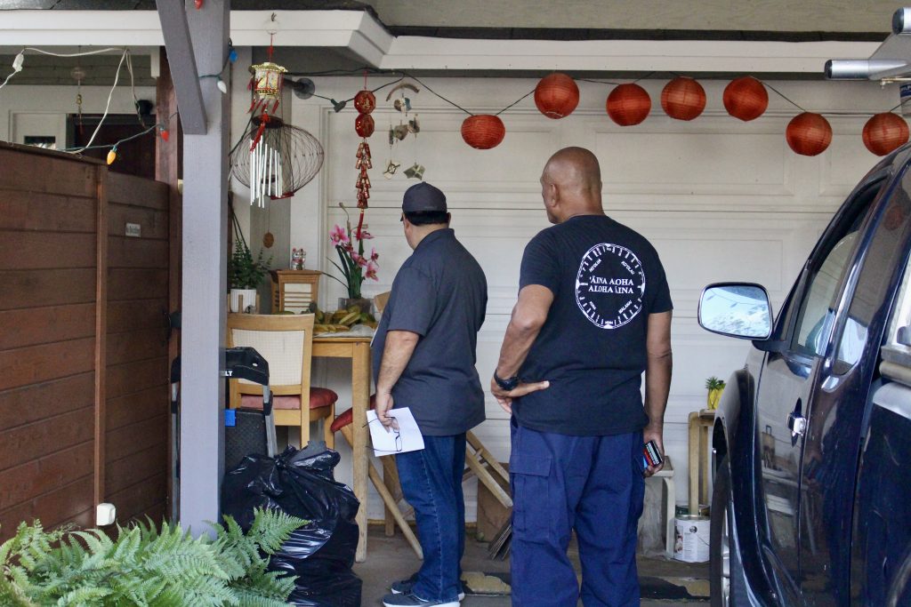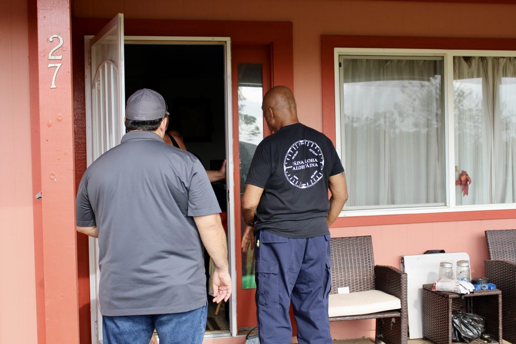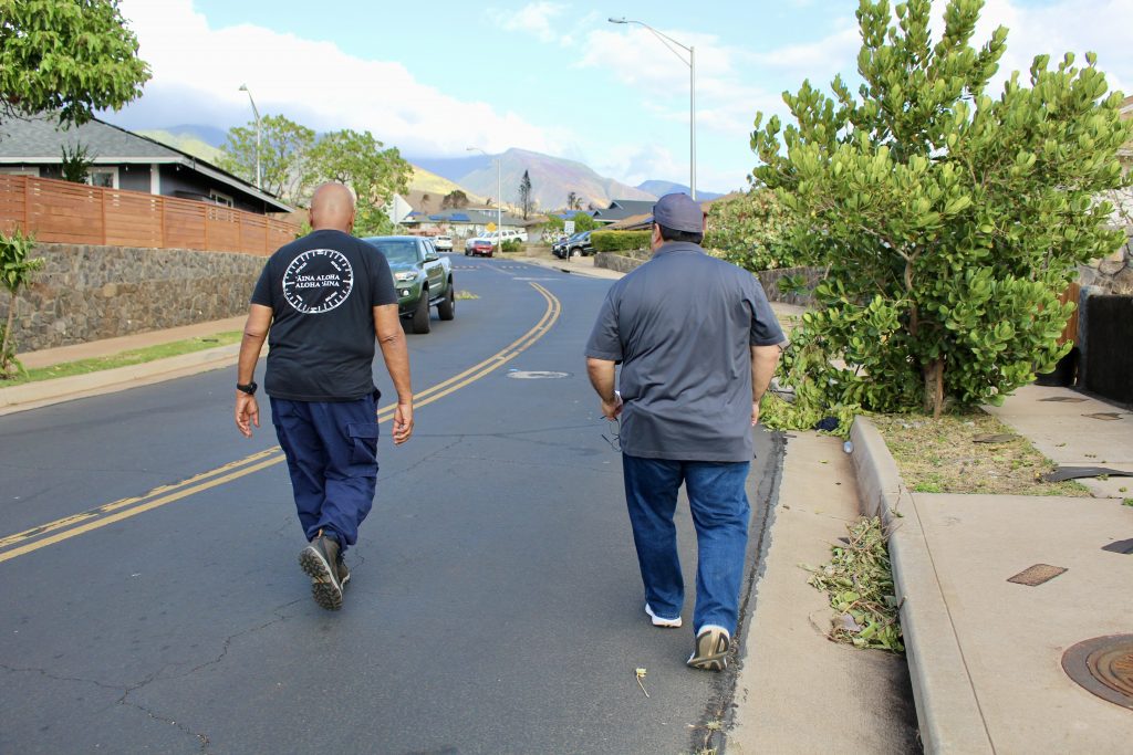 In partnership with local and community leaders, Hawaiian Homes Maui Commissioner Randy Awo lead a team of DHHL staff through the Villages of Leialiʻi Thursday. While on the ground the team went door-to-door to check on beneficiaries, survey their needs, distribute supplies, and assess damage to homes.