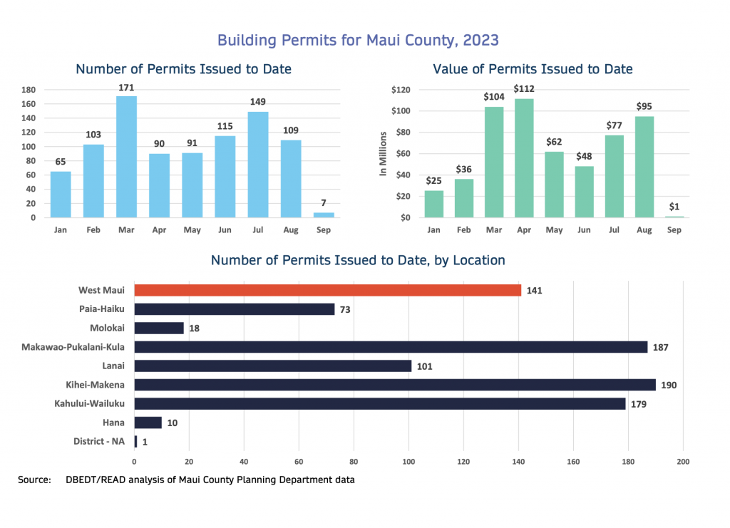 The Maui wildfires impacted not only West Maui, but our entire state and the lives of our residents in many ways and have affected our economic recovery from the COVID-19 pandemic. The reconstruction of Lahaina will be a long-term process. DBEDT will continue working with the people of Lahaina and other government agencies at the federal, state, and county levels, as well as with private organizations, to provide help to Maui residents and businesses during this difficult time.