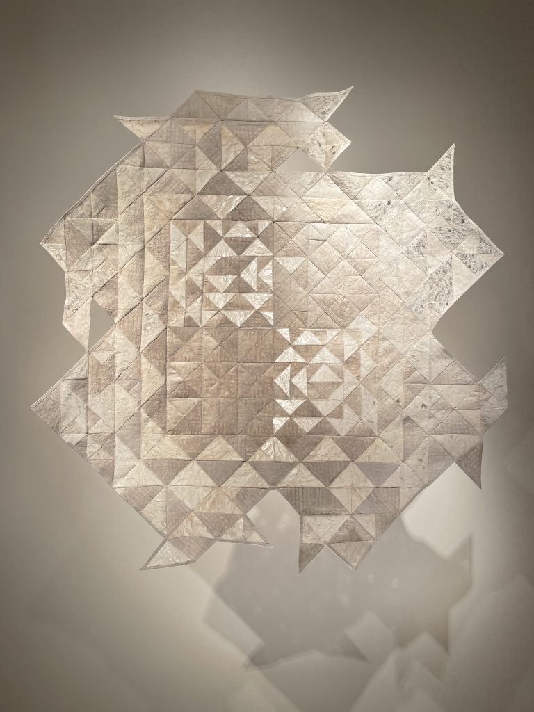 In Adaptive Frameworks, she integrates disparate fiber-based practices to pay homage to the intricate relationships of culture and craft – patchwork quilting of African-American communities of the Southern US that nod to her own family heritage, felting from Scandinavian origins, and tapa-making with nuanced roots throughout Polynesia – layering these explorations with elements of geometric abstraction to voice her distinct perspective.