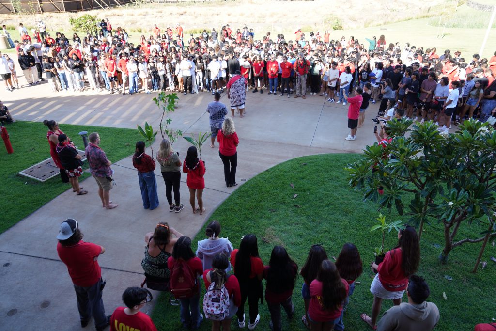 The school day ended with Lahainaluna students uniting as one group to sing their alma mater, led by retired teacher “Aunty Lori,” who taught at Lahainaluna for many decades. Students will begin their regular class schedules tomorrow.