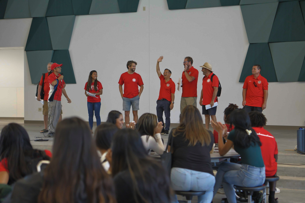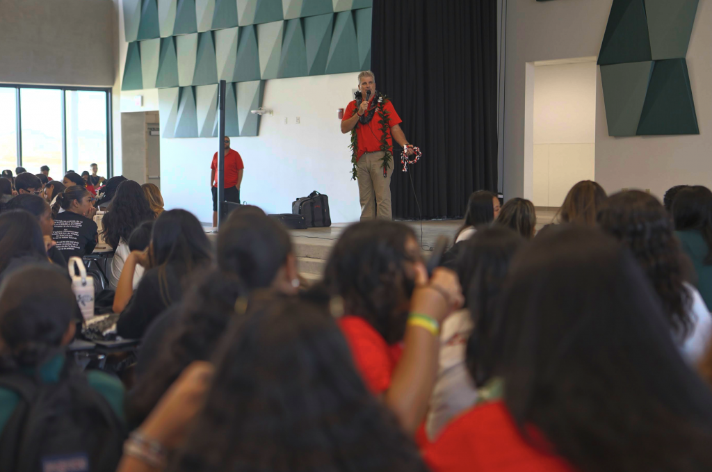 The day started with an opening protocol to honor the partnership between the two schools, and was followed by a rotating orientation for Lahainaluna students.