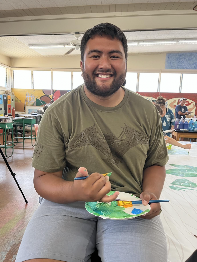 Kanaele was one of the mural painters who focused on the ‘ulu tree. “This project is a great way to have students and faculty members participate in creating art with each other as well as to create beautiful art around the UHMC campus. I think the murals will enable new and enrolled students to see the beauty of Hawai‘i and create the feeling of aloha that the Island and the school have to offer,” he said.