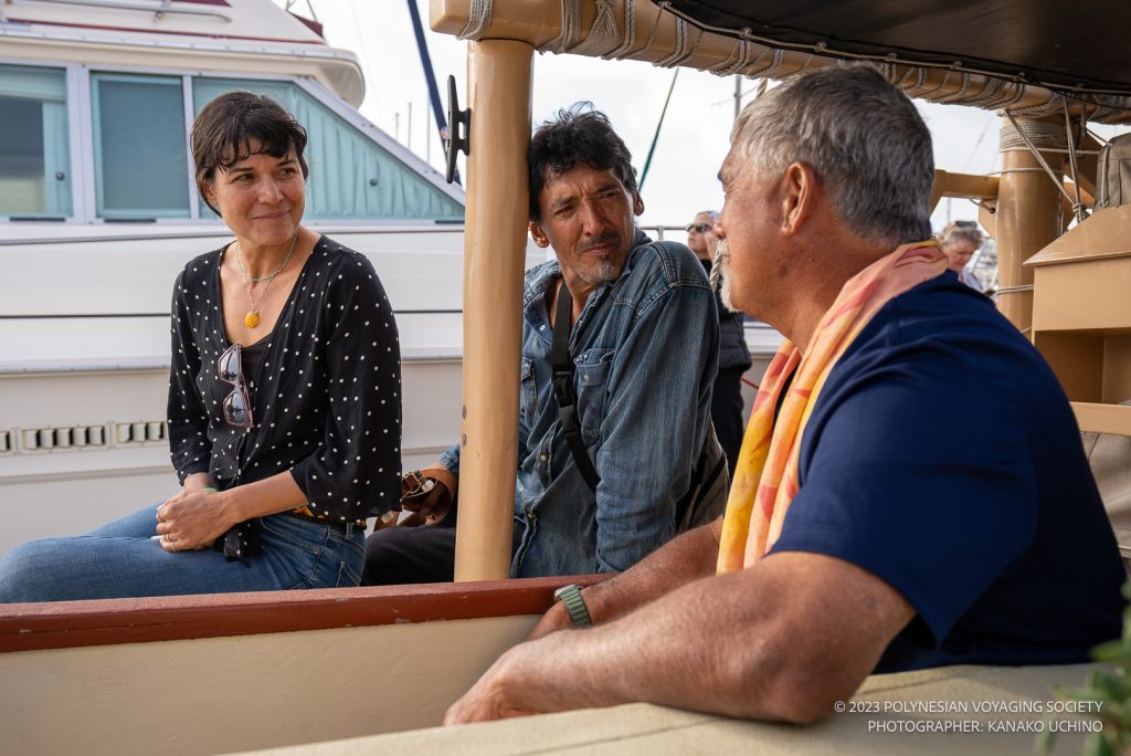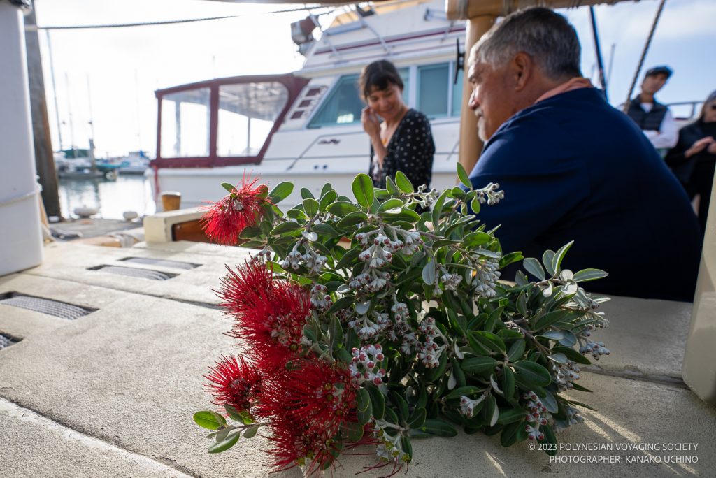 After a six-and-a-half hour transit, Hōkūleʻa arrived at Pillar Point Harbor in Half Moon Bay at 3 p.m., where the crew was given a traditional cultural welcome by the Ramaytush tribe. Also waiting on the dock, and welcoming canoe and crew with song was Hawaiʻi musician John Cruz who was in Half Moon Bay for a fundraising concert for Maui. While in Half Moon Bay, the crew has been holding dockside canoe tours and presentations for the community.