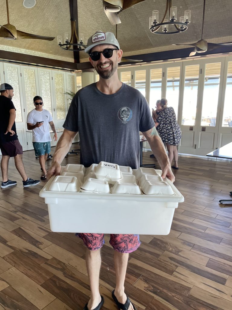 The Merriman’s restaurants have been providing the service through their own efforts with the help of private donations and purveyors like Rimfire which has donated food. On one day in particular, a fisherman dropped off 300 pounds of ahi (tuna) for the Merriman’s distribution. Iron Horse, which runs refrigerated trucks, also donated their services to the effort when there was no power in West Maui.