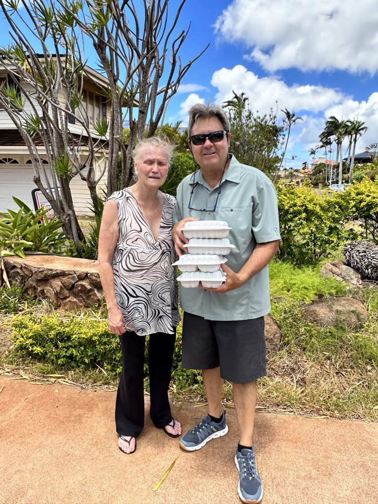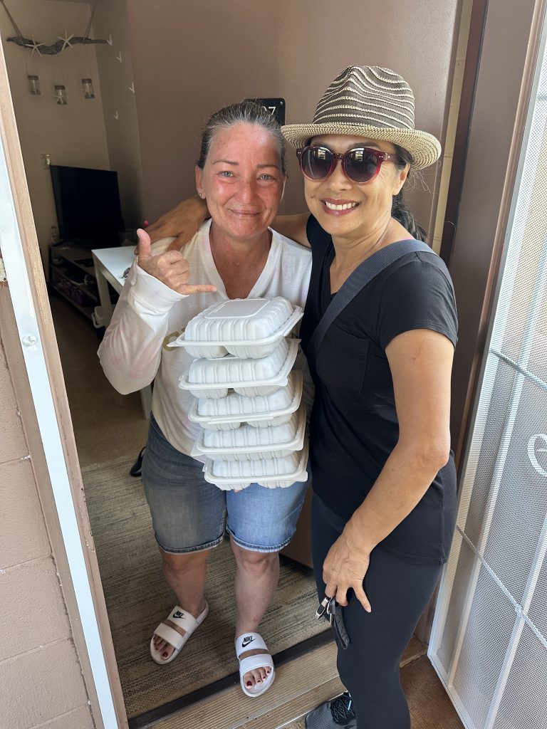 In the initial days of response, distribution was established at the front of Whalerʻs Village and at the Merriman’s restaurant in Kapalua. Several hundred meals were also being delivered to families in need who were unable to leave their homes or access distribution locations.
