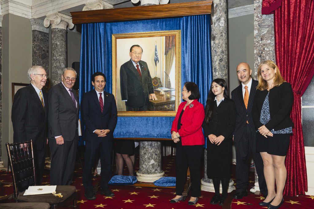 A portrait of the late US Senator Daniel K. Inouye was unveiled today at the US Capitol, becoming the first portrait of a person of color in the US Senate’s leadership portrait series.