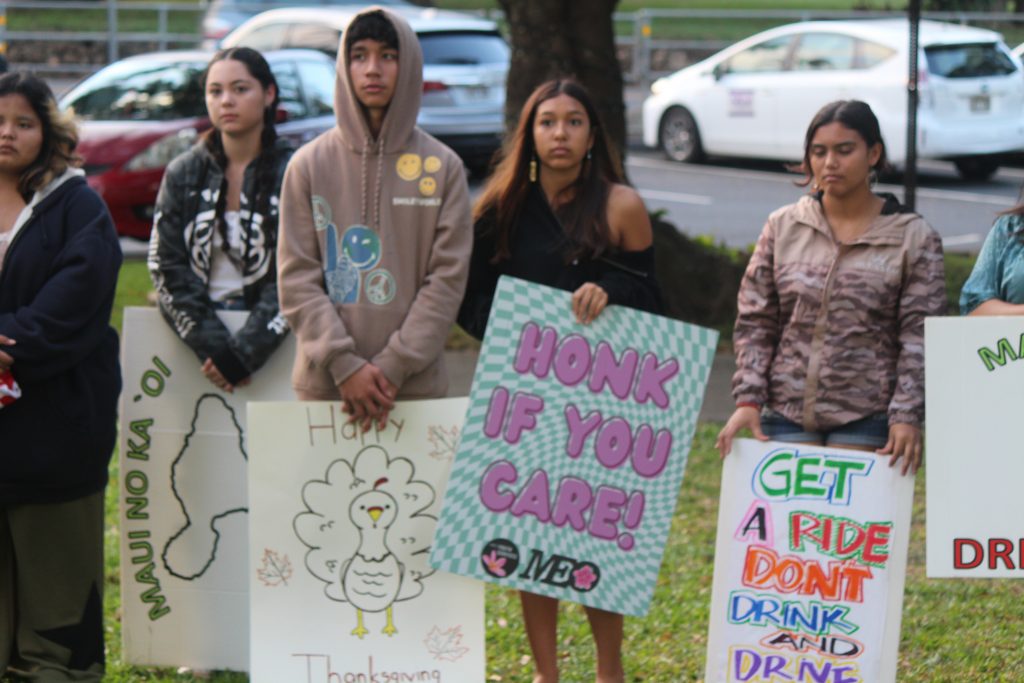 “I love all the signs, because it’s really the youth out there that are going to help us lead the way,” said Hashimoto. A group of students from the youth program at Maui Economic Opportunity joined the event with signs to remind drivers of the dangers and tragedy that comes from drunk driving.