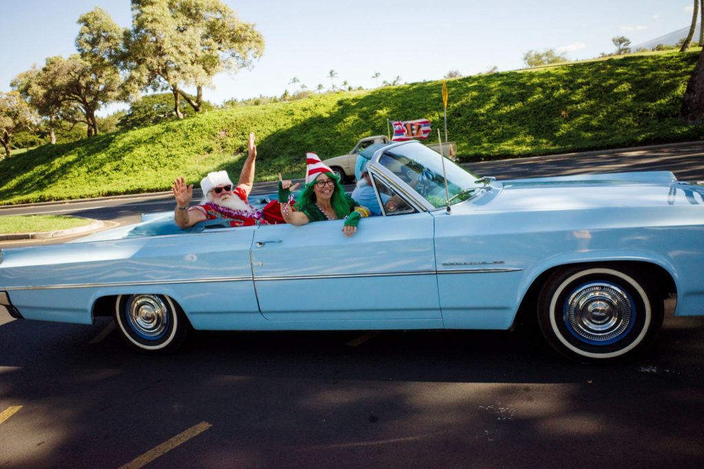 The festivities included the Santa Parade, where the white-bearded man was escorted in style from Kalama Park to the shopping center by Maui Classic Cruisers and Street Bikers United Hawaiʻi.