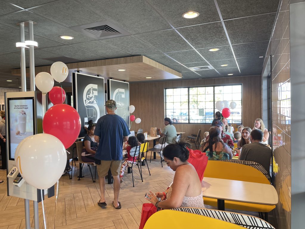 McDonald’s celebrates a newly renovated Kīhei restaurant with a more spacious 74-seat dining room, self-ordering kiosks and double drive-thru lanes for quicker and easier ordering.