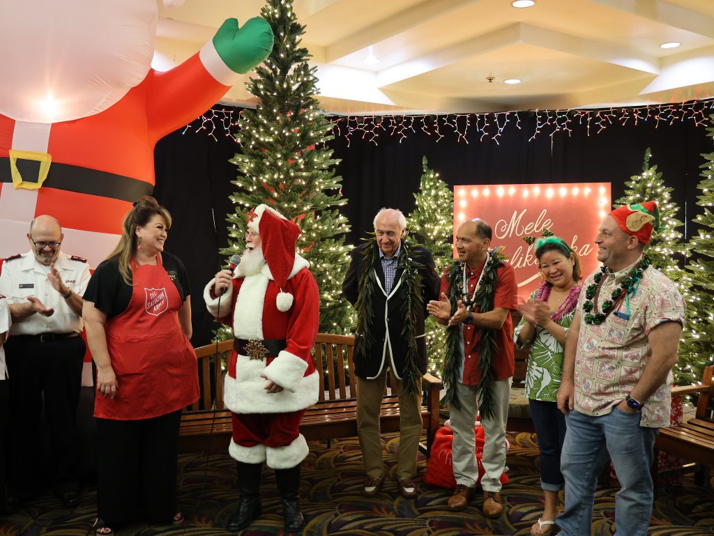 The Salvation Army, in collaboration with The Spirit of Liberty Foundation brought Santa and Mrs. Claus to create a magical atmosphere for families and keiki to enjoy holiday surprises and goodwill. Additionally, all participating families received a Magical Maui Christmas artificial tree, ornaments, lights, stockings, holiday decorations, and of course an array of gifts and toys for children aged 0-15 years old.