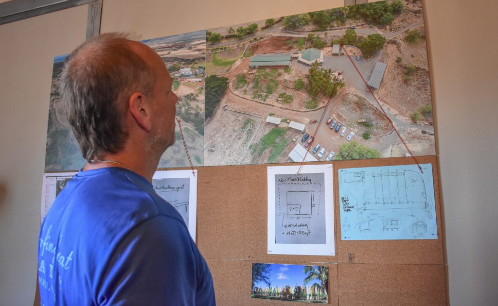 He has spent the first seven weeks cleaning up the place, which has included taking 50 loads of junk to the landfill. He also is working on repairing an irrigation system that has left much of the fields brown. He plans to plant palm trees with string lighting for upcountry dinners, and create a grassy area with picnic tables and some corn hole games.