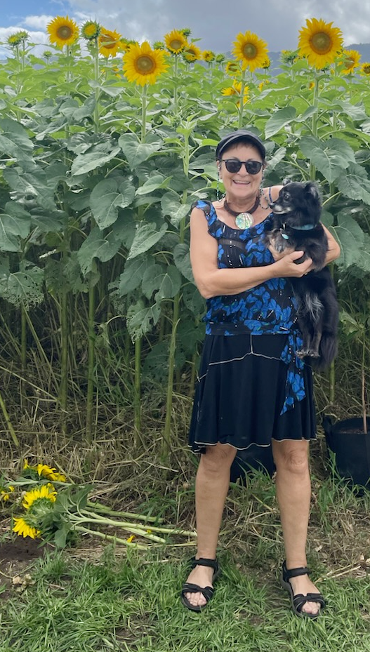 • MFN Co-Founder Dr. Phyllis Robinson at the Maid in Hawaii Sunflower Fields. P/C