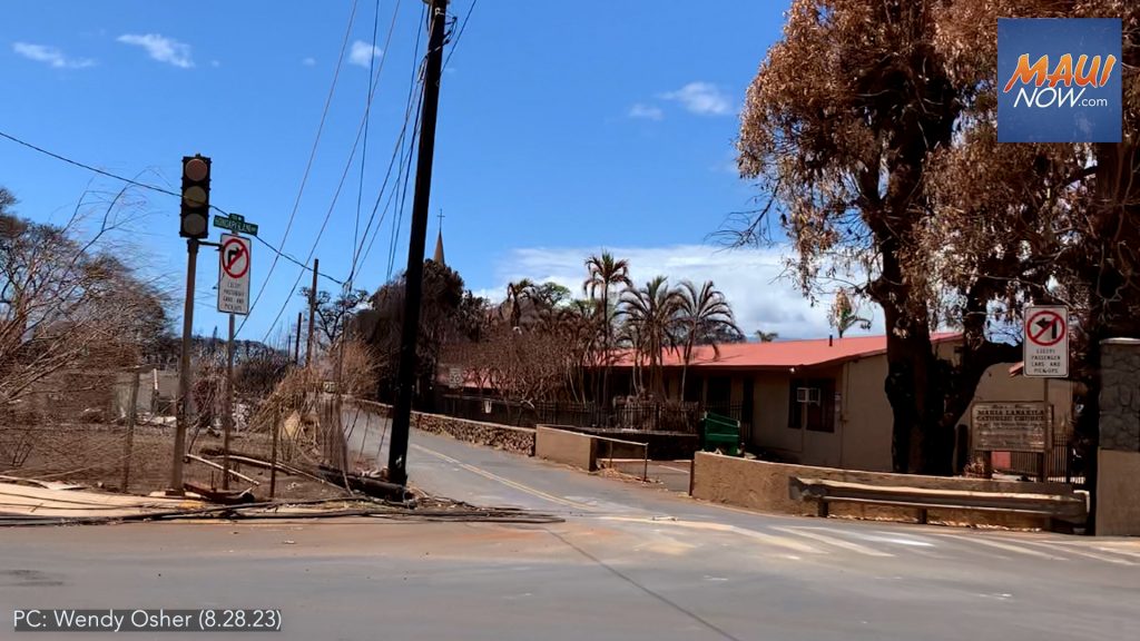 Wildfire recovery work in Lahaina continues on state roadways, with progress outlined for the repair of traffic signals and guardrails, assessment of opening closed areas, the installation of an emergency stormwater capture system, and monitoring traffic impacts of emergency drain line replacement work.