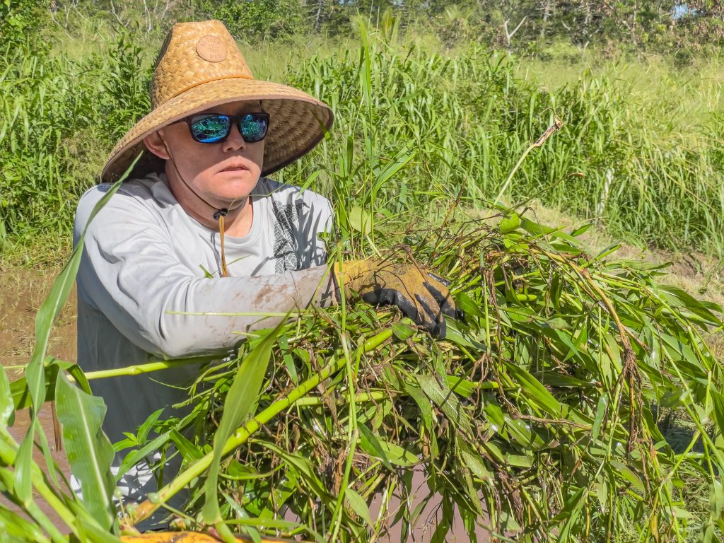 Volunteers worked on projects that included clearing and cleaning loʻi kalo, planting native plants, making kapa, and improving the facilities at the center.