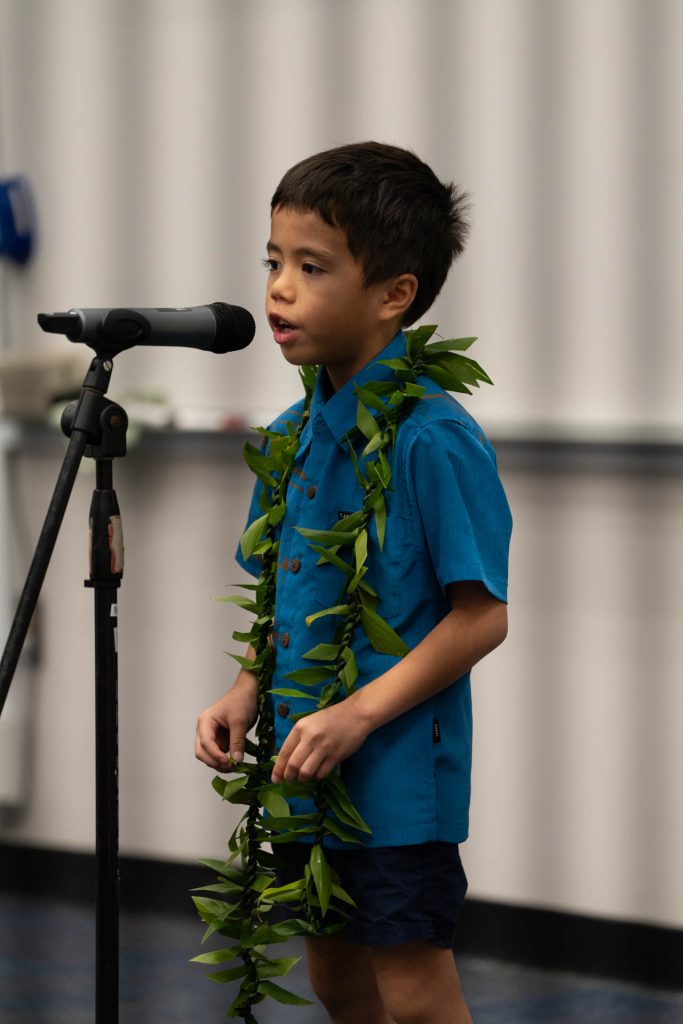 The hoʻokūkū ʻōlelo Hawaiʻi (Hawaiian language speech competition) for students in grades K-12, is a centerpiece of each Ola ka ʻĪ, and this year about 50 haumāna from across the island participated Friday night at UHMC. Winners of this year’s Ola ka Ī Maui Nui speech competition were featured in Saturday’s program at the Queen Kaʻahumanu Center. They were: