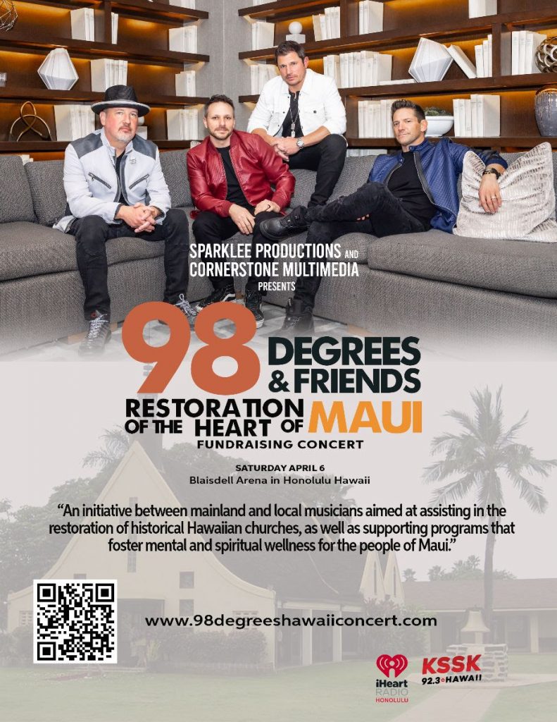 A list of local artists have been added to the lineup for the upcoming “98 Degrees & Friends: Restoration of the Heart of Maui Fundraising Concert,” taking place Saturday, April 6, 2024 at 6 p.m. the Neal S. Blaisdell Arena in Honolulu.