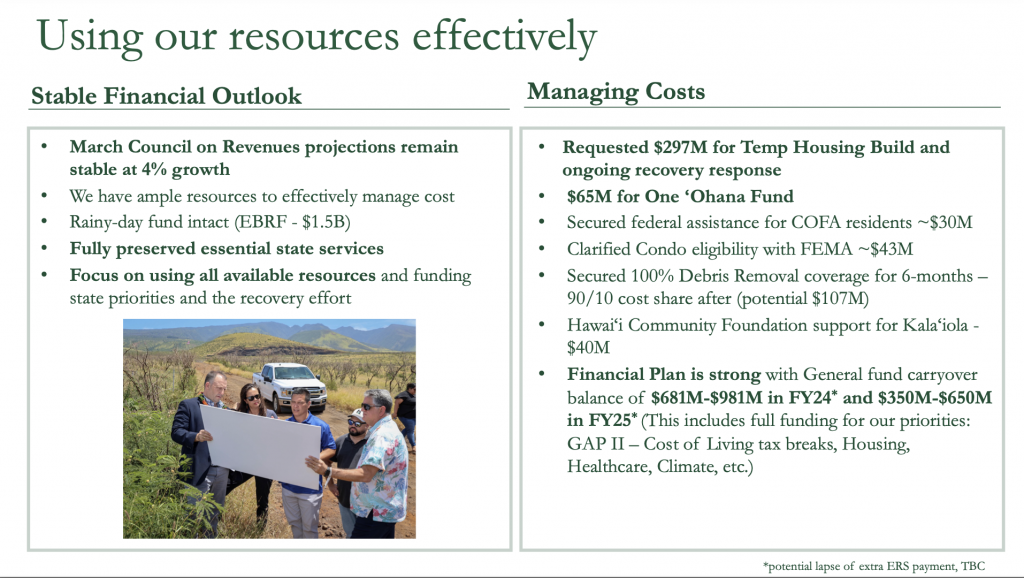 “A lot of people have been offered an apartment/housing and have rejected it because it’s too far away from West Maui or it didn’t suit their family circumstance,” said Gov. Green. “We’ve tried to be incredibly understanding because we don’t want to additionally disrupt people’s lives.”