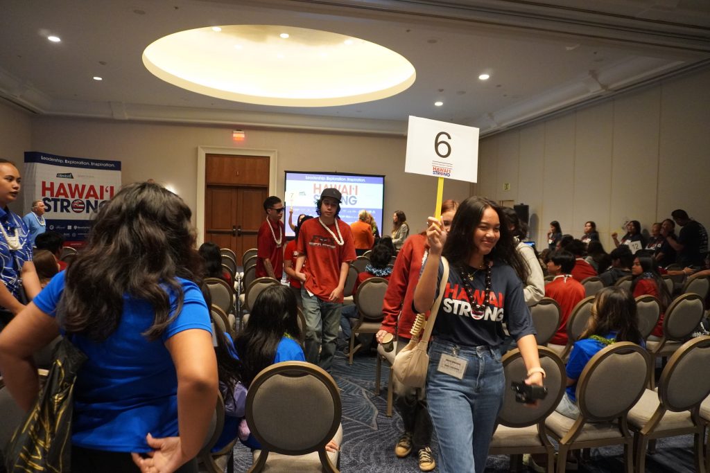 In the afternoon ClimbHI Exposure Fair, students networked with over 45 businesses and organizations. This year’s LEI theme is “Hawai‘i Strong” and recognizes more than 100 students statewide who participated in disaster response training under the Community Emergency Response Team (CERT) Program organized by ClimbHI in October following the Maui wildfires.