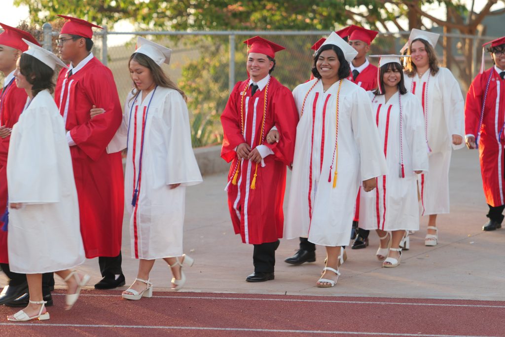 Fifteen students, who were displaced by the fires to other high schools, also walked with their classmates to celebrate graduation.