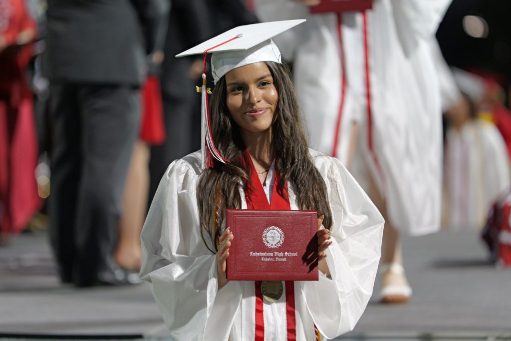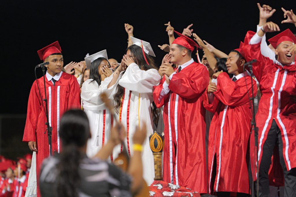 Lahainaluna High School’s Class of 2024 celebrated the end of an emotional four-year journey, with 216 seniors receiving their diplomas Sunday night at the Sue D. Cooley Stadium.
