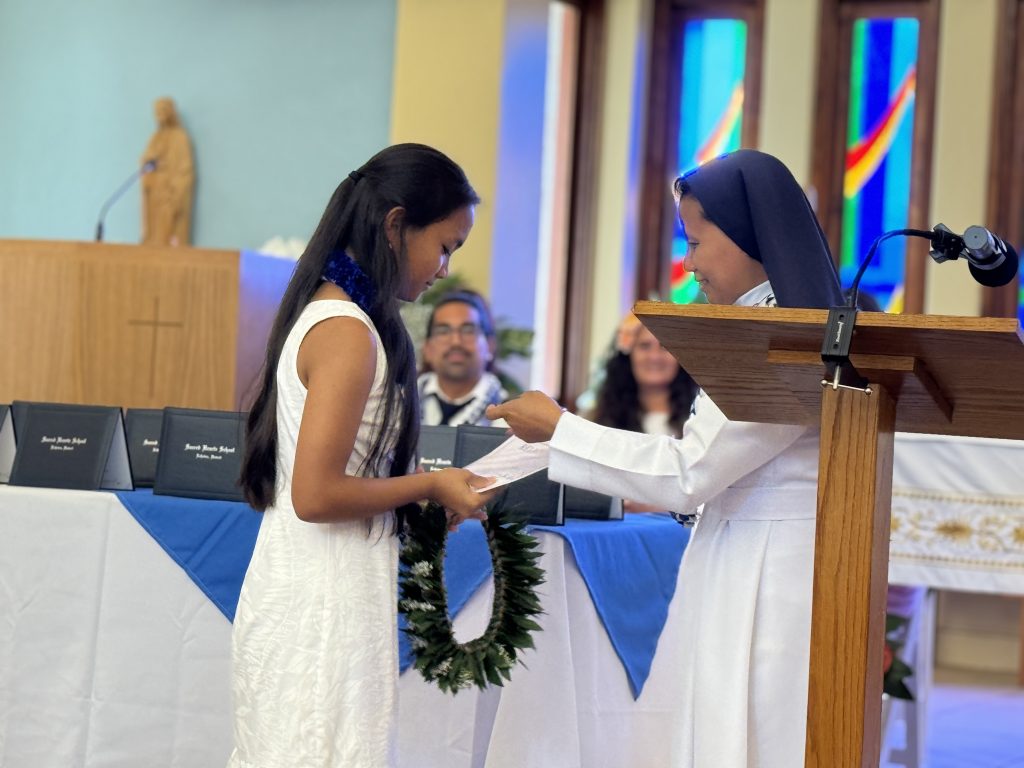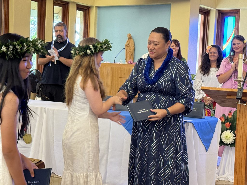 Sacred Hearts School held its 2024 eighth grade graduation on Wednesday, May 29 at Sacred Hearts Mission Church in Kapalua, marking a significant milestone in a year defined by extraordinary challenges and remarkable resilience. The school, which was originally located in Lahaina, transitioned to Kapalua following the devastating fire on Aug. 8, 2023, that severely damaged half of their Lahaina campus.