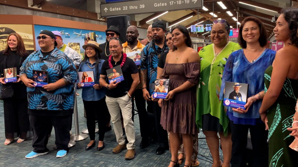 The first phase of the “Maui Nui Hall of Fame” was unveiled Sunday evening at Kahului Airport, featuring 40 inaugural inductees from Maui County who have made significant contributions in music, film, and sports in Hawai‘i and beyond. The event drew more than 100 Hawaiʻi icons, government leaders, residents and well-wishers who celebrated the accomplishments, talents and impressive careers of honorees who have left a lasting impact in their respective fields.
