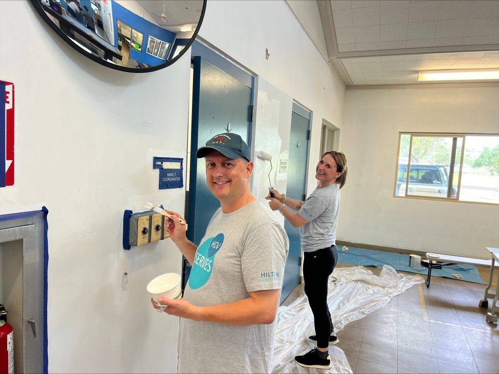 More than 20 Hilton Grand Vacations team members paired up with the Boys & Girls Clubs of Maui to clean the lounge, repaint basketball courts, tend to the garden and tidy spaces at the Central Clubhouse in Kahului as the program prepares to welcome keiki back for its upcoming summer programs.